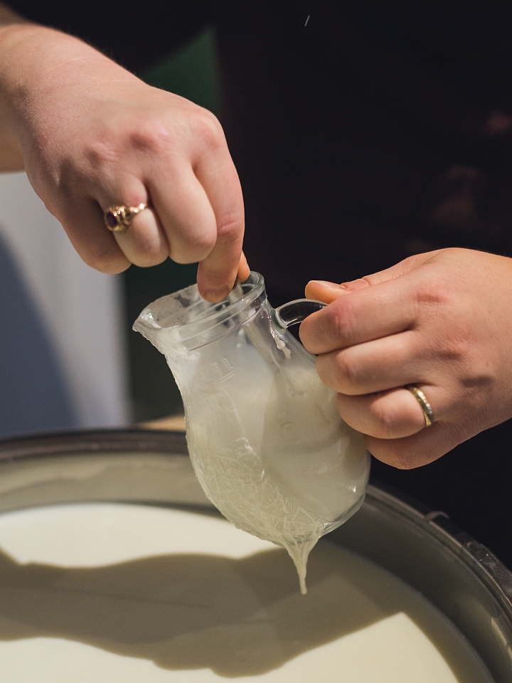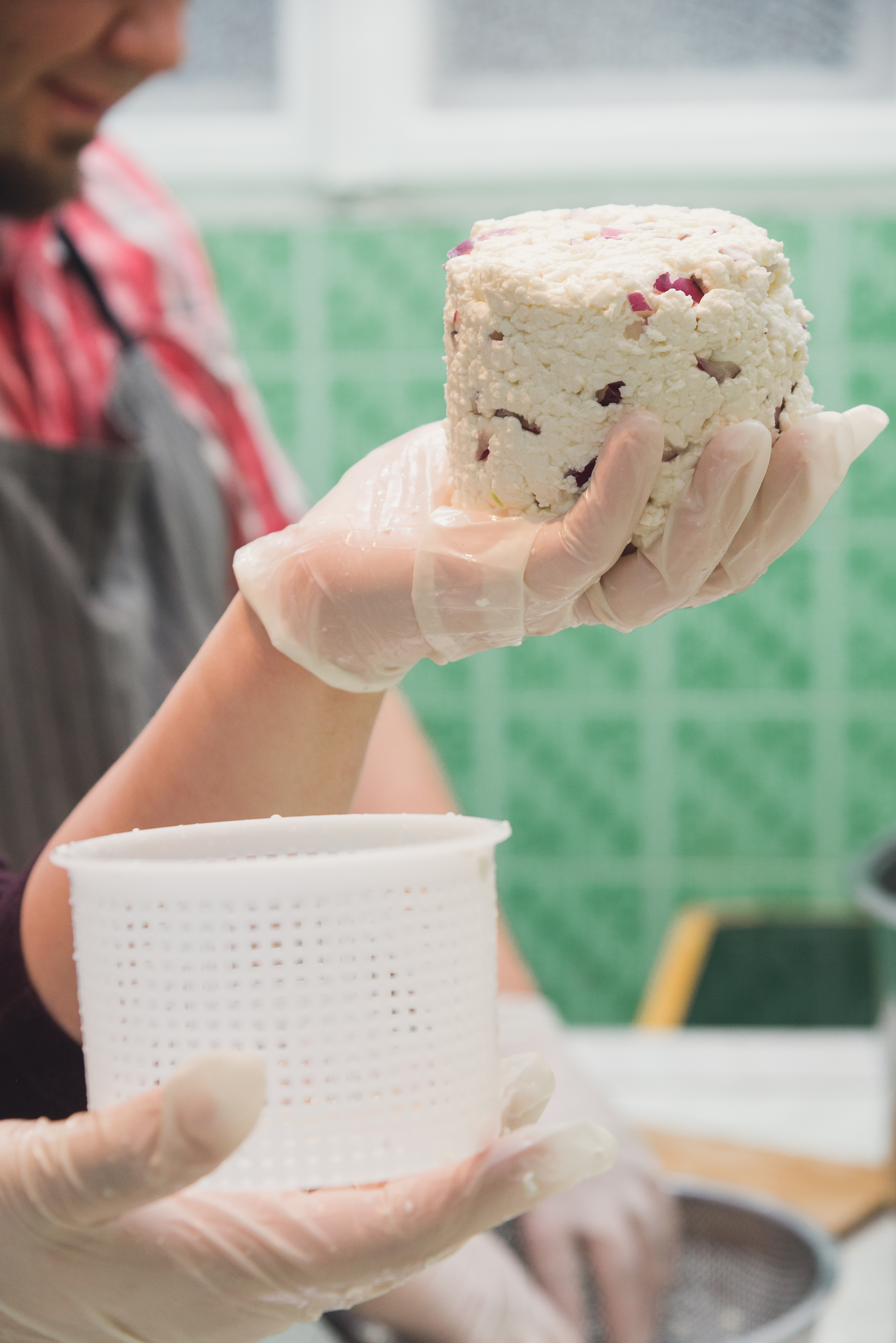 Lágy sajtoknál és egyes félkemény sajtoknál itt kész is a kádmunka, leszedjük a savót és formázzuk az alvadékot.